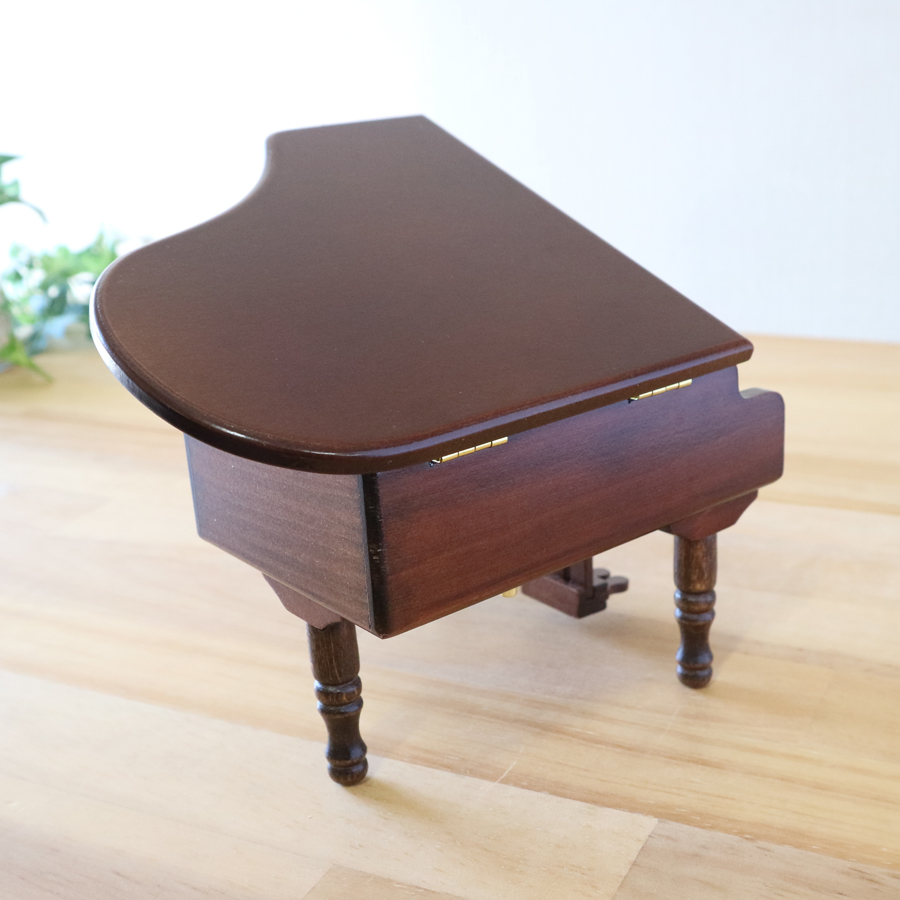 木のぬくもりを感じる、アンティーク調のミニチュアグランドピアノ。 丁寧に仕上げられた木製の本体とスツールは、まるで本物のピアノのような存在感。 どこか懐かしく、やさしい雰囲気が空間を彩ります。 インテリアとしてはもちろん、ギフトにもぴったりの一品です。