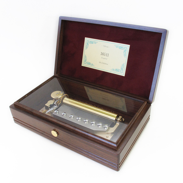 シリンダーオルゴールの国内最高級機種・72弁オルゴールを、銘木ウォールナット(くるみ材)製の高級BOXに収めました。 72本の弁が奏でる豊かなハーモニーは、まるで生演奏のように心を震わせます。